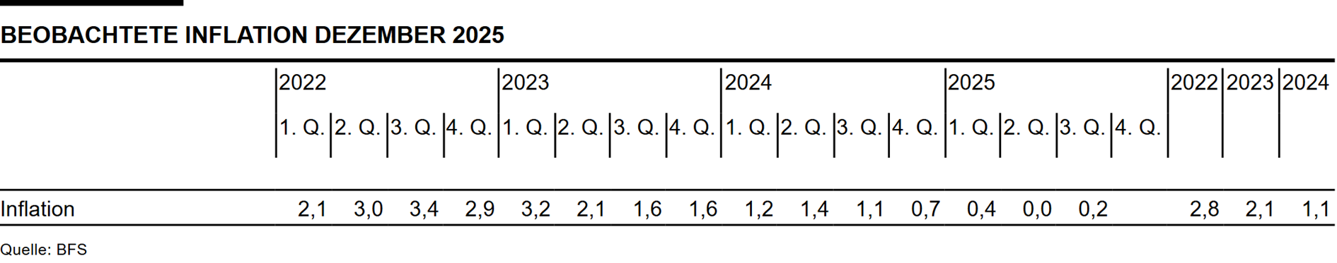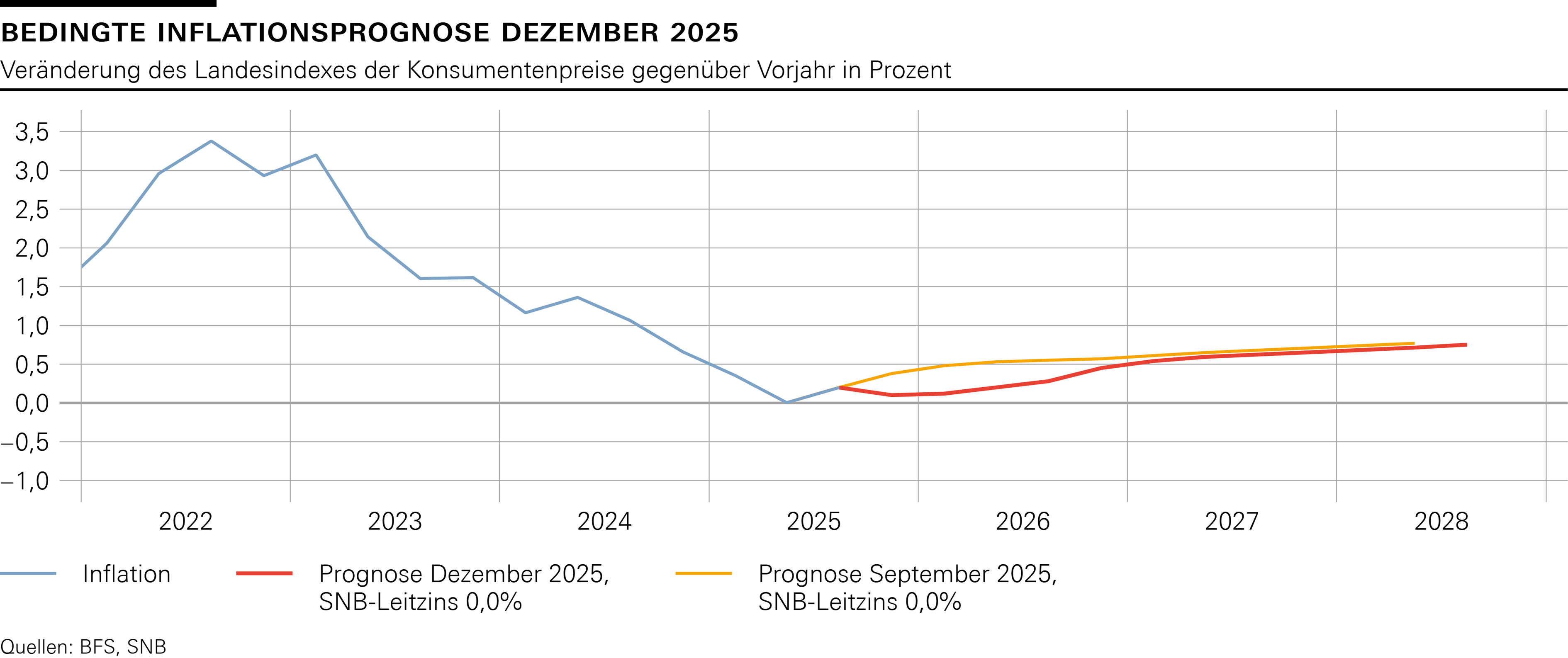 Vertiefte Informationen zum geldpolitischen Entscheid finden sich in den Einleitenden Bemerkungen des Direktoriums (verfügbar auf der SNB-Website ab 11. Dezember 2025, 10.00 Uhr).