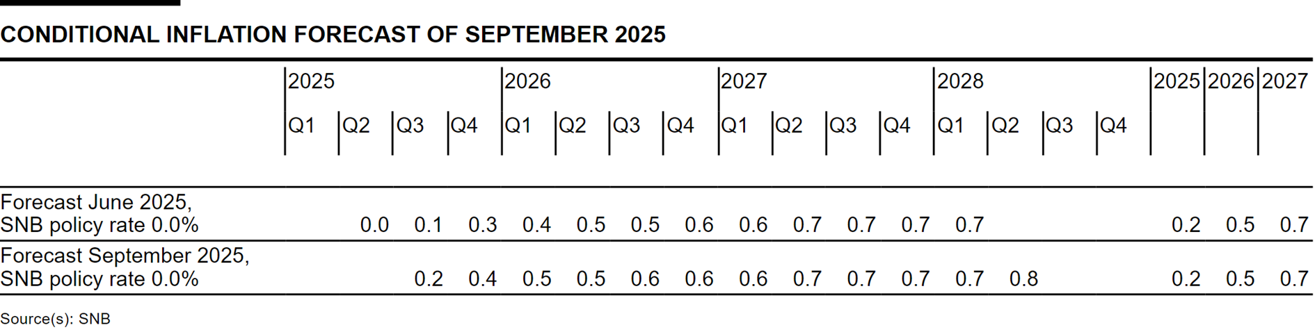 More detailed information on the monetary policy decision can be found in the introductory remarks by the Governing Board (available on the SNB website from 10 am on 25 September 2025).